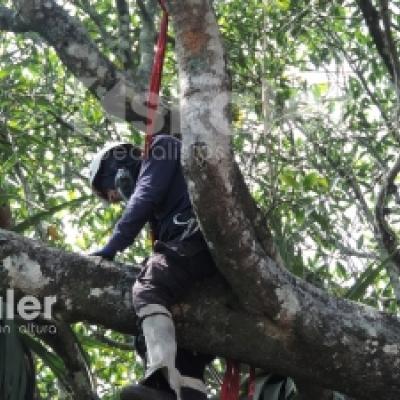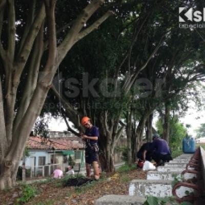 Mantenimiento ejecutando poda en árboles de mediano y gran tamaño mediante técnicas especializadas de trabajo en altura cumpliendo con todas las normas de seguridad. Limpieza en zonas cubiertas