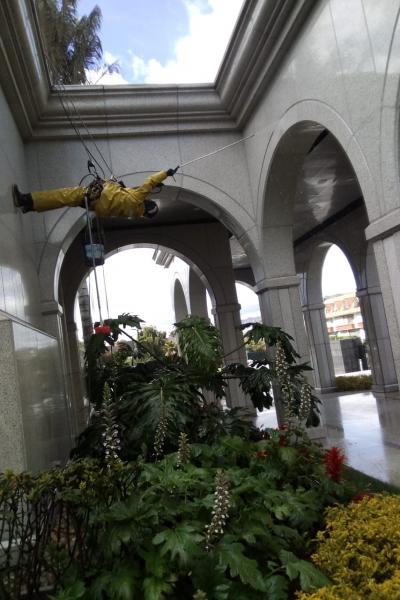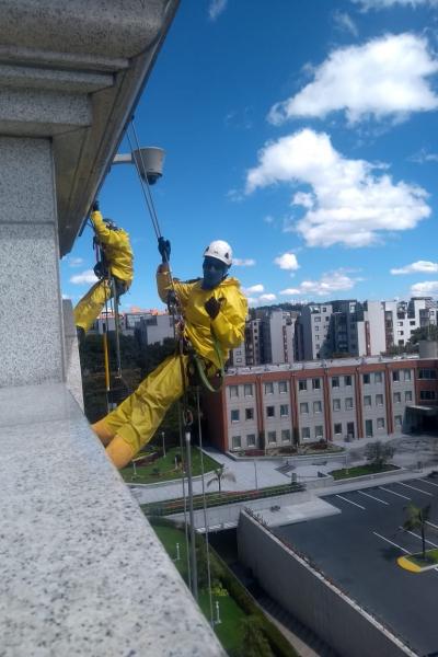 Trabajo especializado en altura para todo tipo de fachadas, limpieza de ventanería, techos, cubiertas.